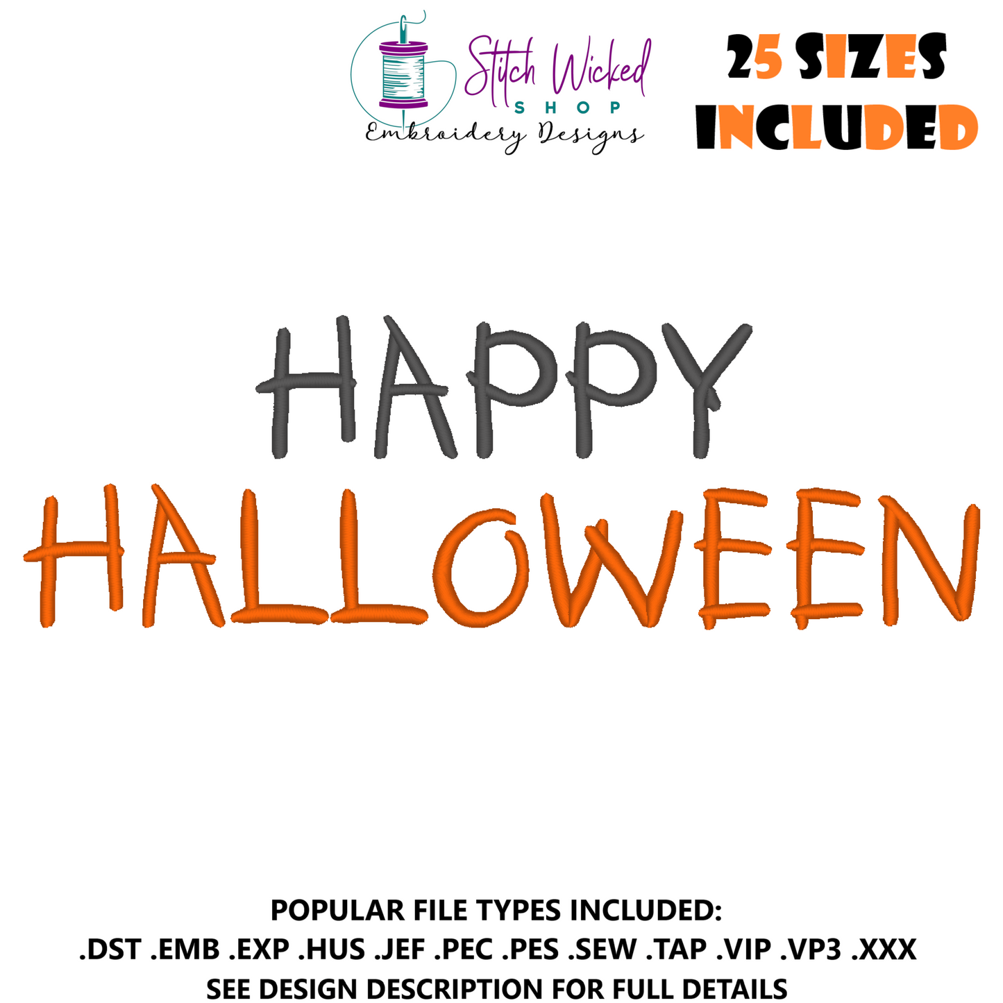 Happy Halloween Text Machine Embroidery Design, 25 Sizes Included