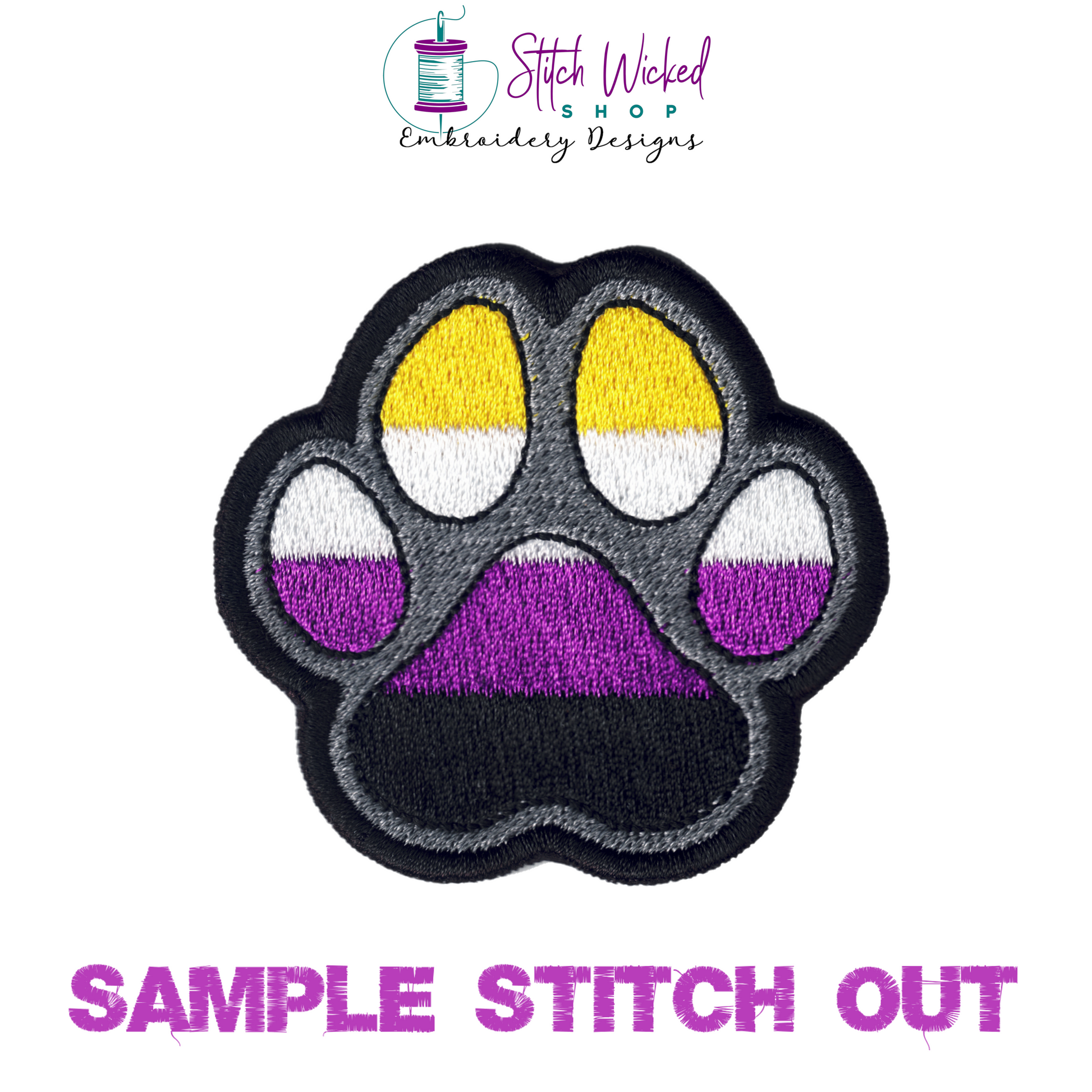 Nonbinary Pride Flag Puppy Dog Paw Print Machine Embroidery Design